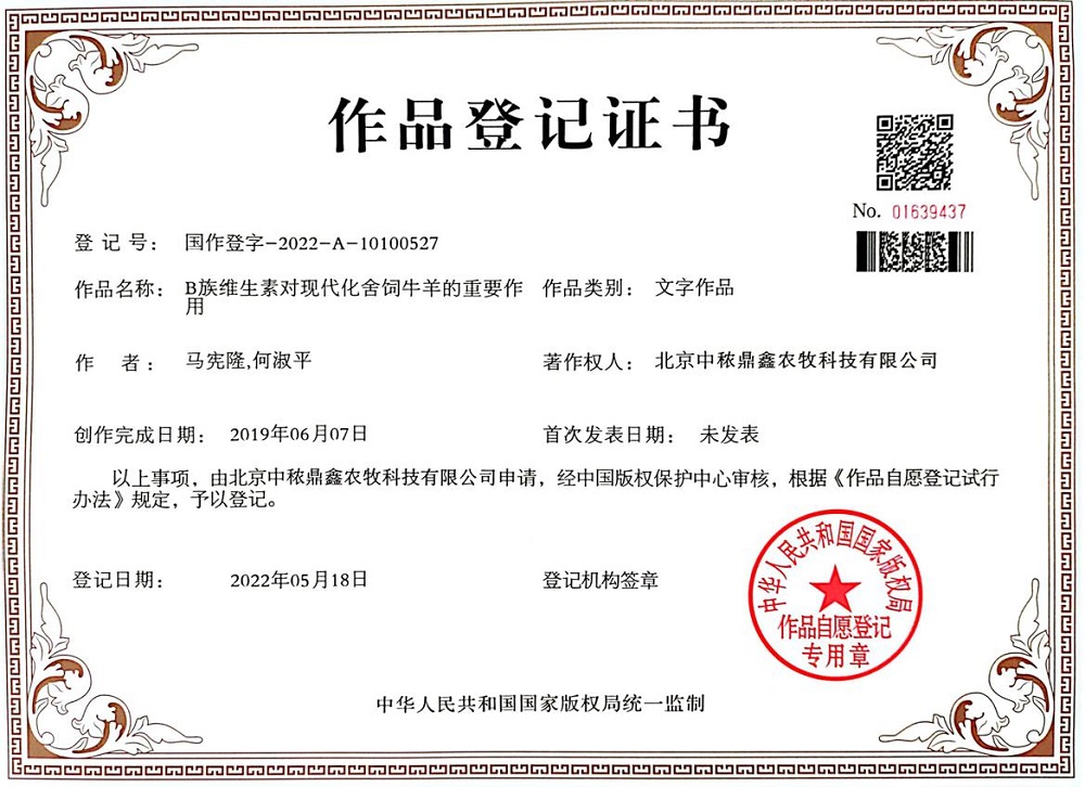 B族維生素的重要作用登記證書